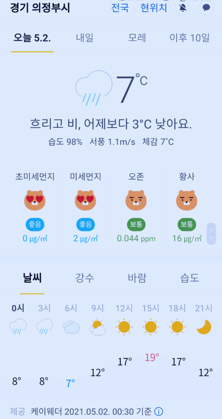 안녕하세요 오늘날씨입니다 :) 매일 아침 6시전국의 오늘 날씨를 알려드립니다.