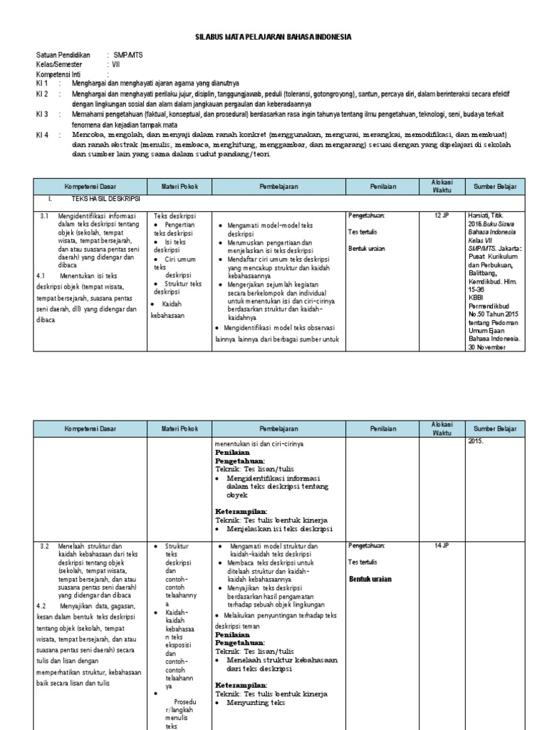 Silabus bahasa indonesia kelas 7 merupakan salah satu administrasi pembelajaran yang harus dimiliki oleh para guru smp/mts sesuai dengan.