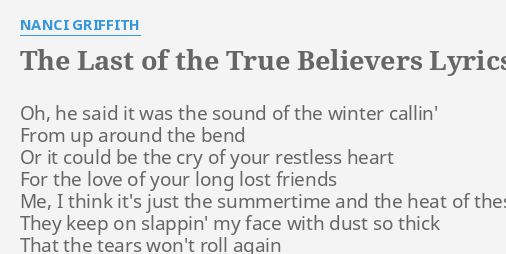 Nanci Griffith Last Of The True Believers - Nanci Griffith Last Of The True Believers 1988 Cassette Discogs : The last of the true believers: